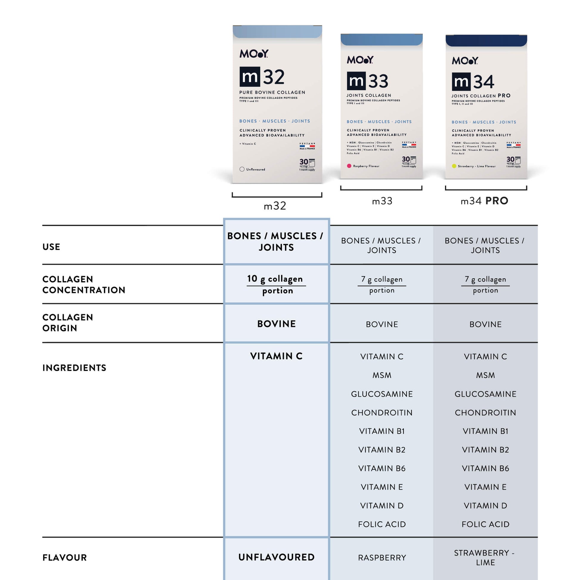 m32 Pure Bovine Collagen & Vitamin C formula features clinically tested hydrolysed collagen sourced from France, enhanced with vitamin C. Our collagen peptides undergo a meticulous enzymatic fragmentation process, ensuring maximum bioavailability and absorption in the human body.